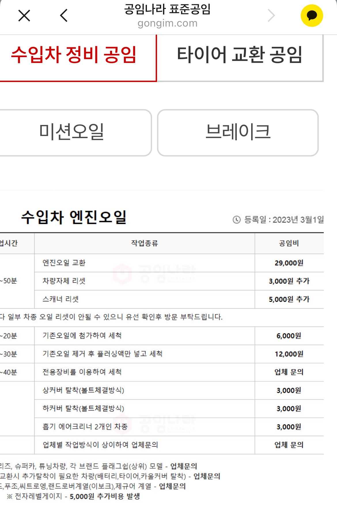 공임나라 수입차 정비 공임은 사이트에 게시가 되어있어요.