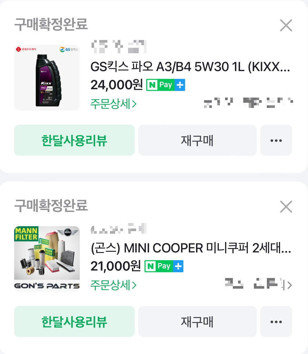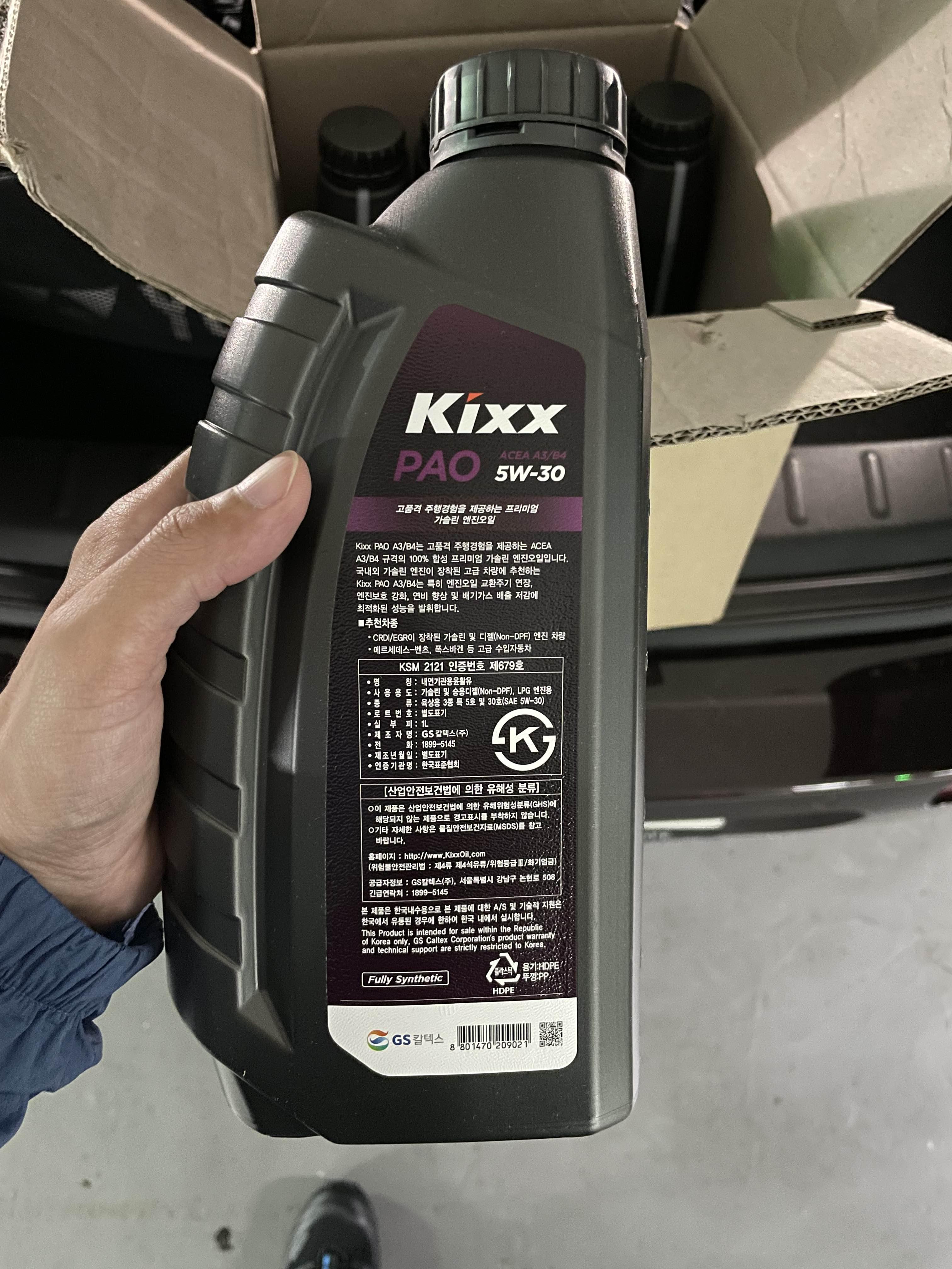 BMW 엔진오일 규격인 LL-01 과 ACEA A3/B4를 만족하는 Kixx PAO 5W-30을 구입했어요.