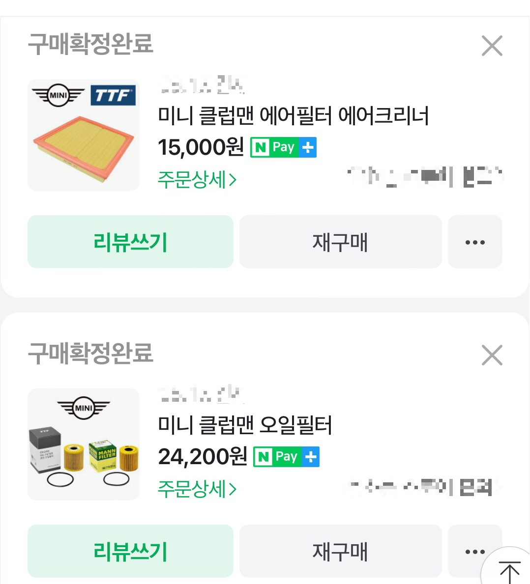 도착한 엔진오일과 오일필터, 에어필터 에어클리너가 도착했습니다.