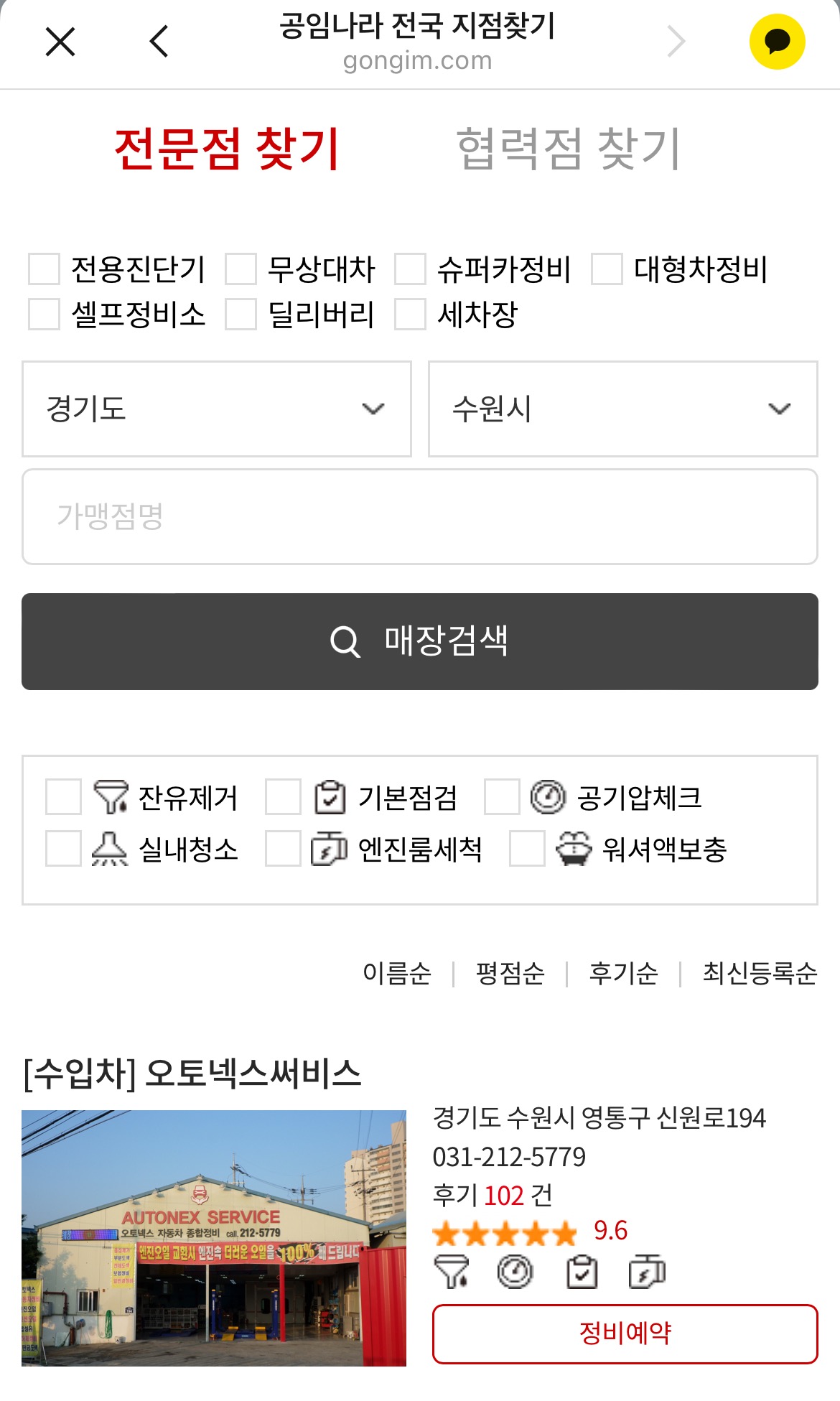 경기도 수원에서 수입 차량을 다루는 공임나라 전문점은…