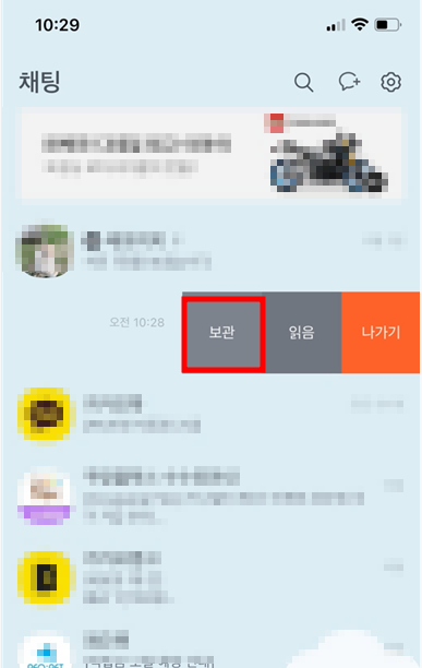 ‘조용한 채팅방으로 보관’ 기능이 보여요~