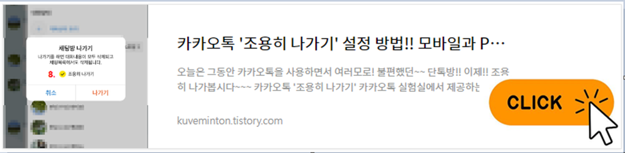 | 카카오톡 '조용히 나가기' 설정 방법!! 모바일과 PC에서 모두 지원합니다 | 카카오톡 실험실 기능 조용히 나가기 사용 방법 (0) | 2023.06.07 |