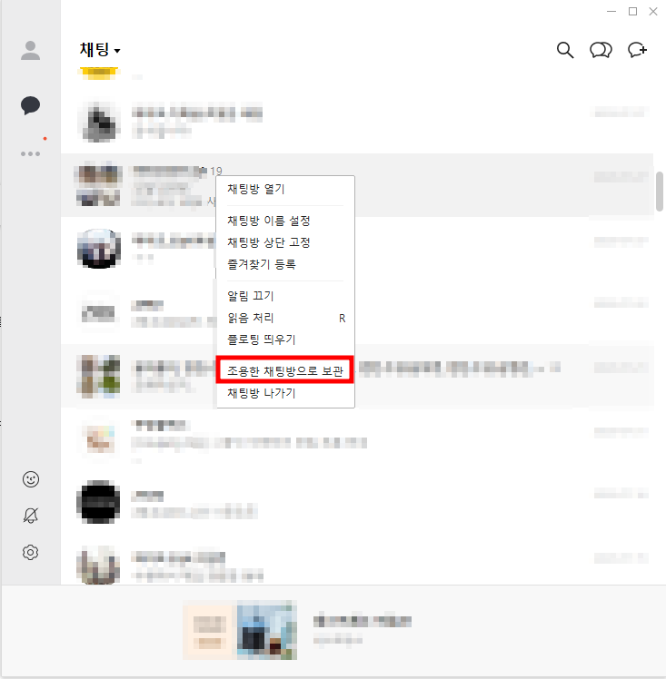 조용한 채팅방으로 설정할 채팅방을 고르고