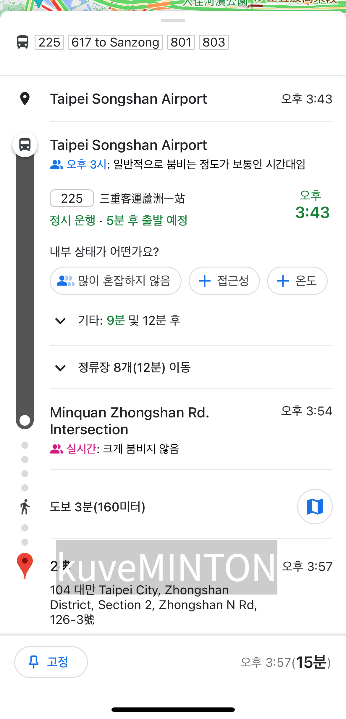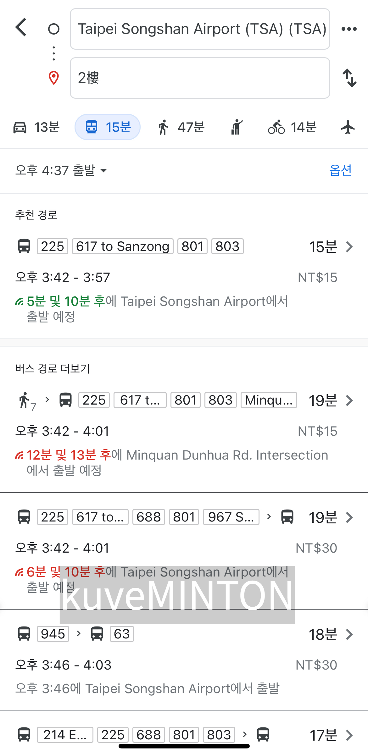그러면 교통수단과 소요 시간이 나와요.