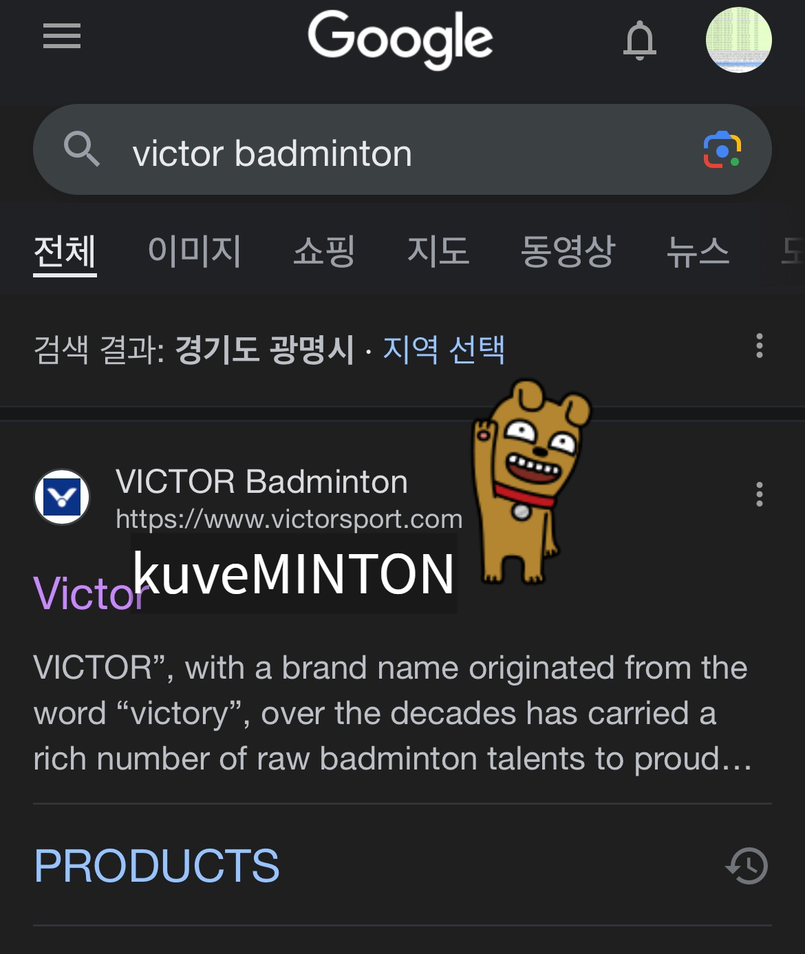 구글에서 victor badminton을 검색합니다.