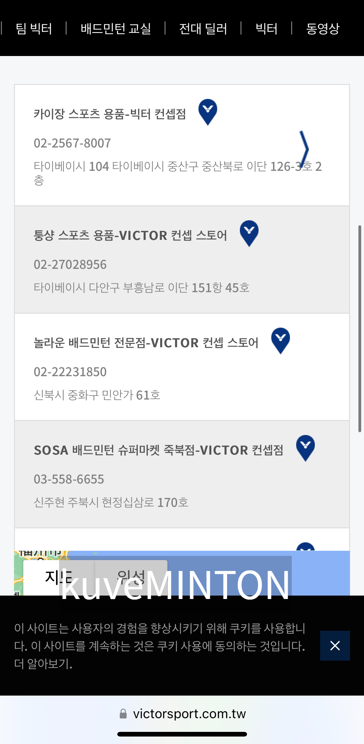 ** 구글맵에서 대만 빅터 매장 정보를 확인
