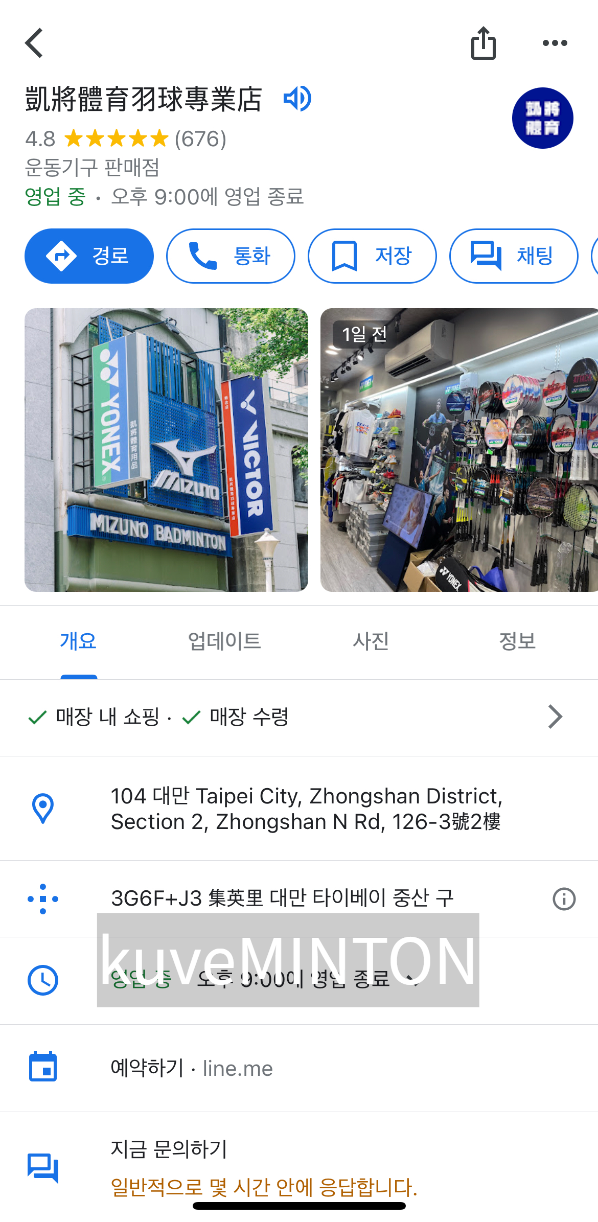 ** 구글맵에 검색된 대만 빅터 용품점