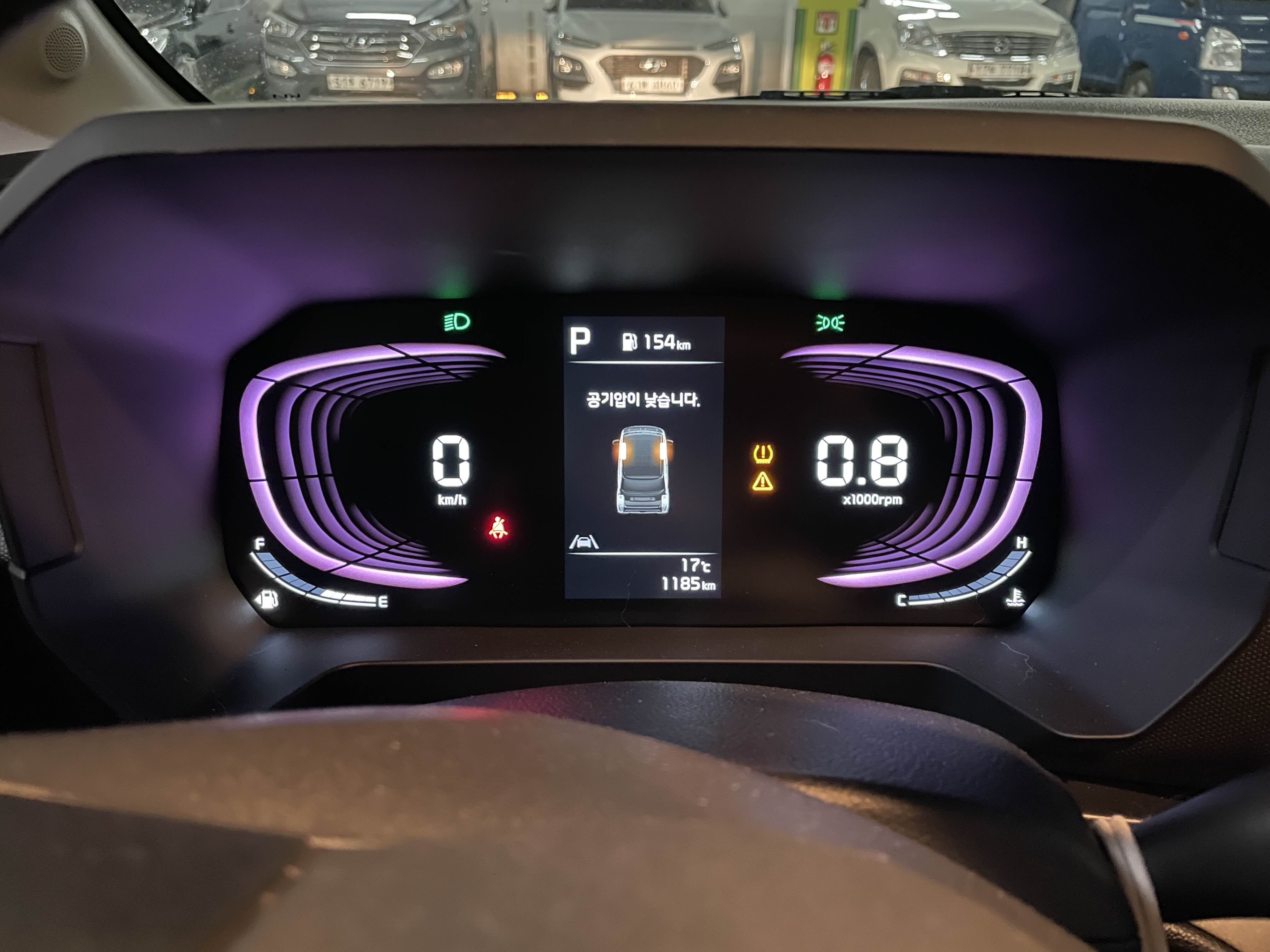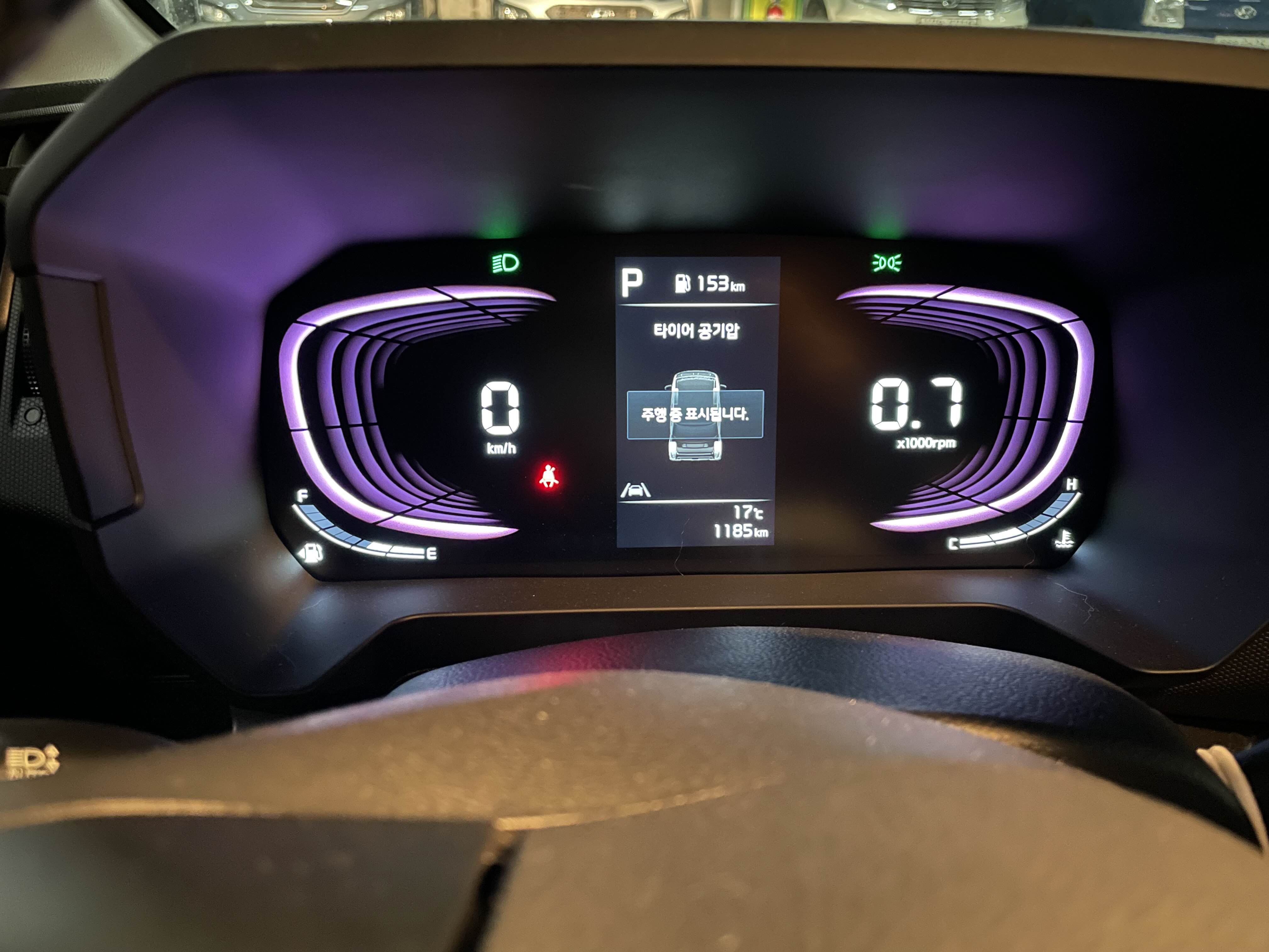 타이어 공기압은 주행을 하면 확인이 됩니다.