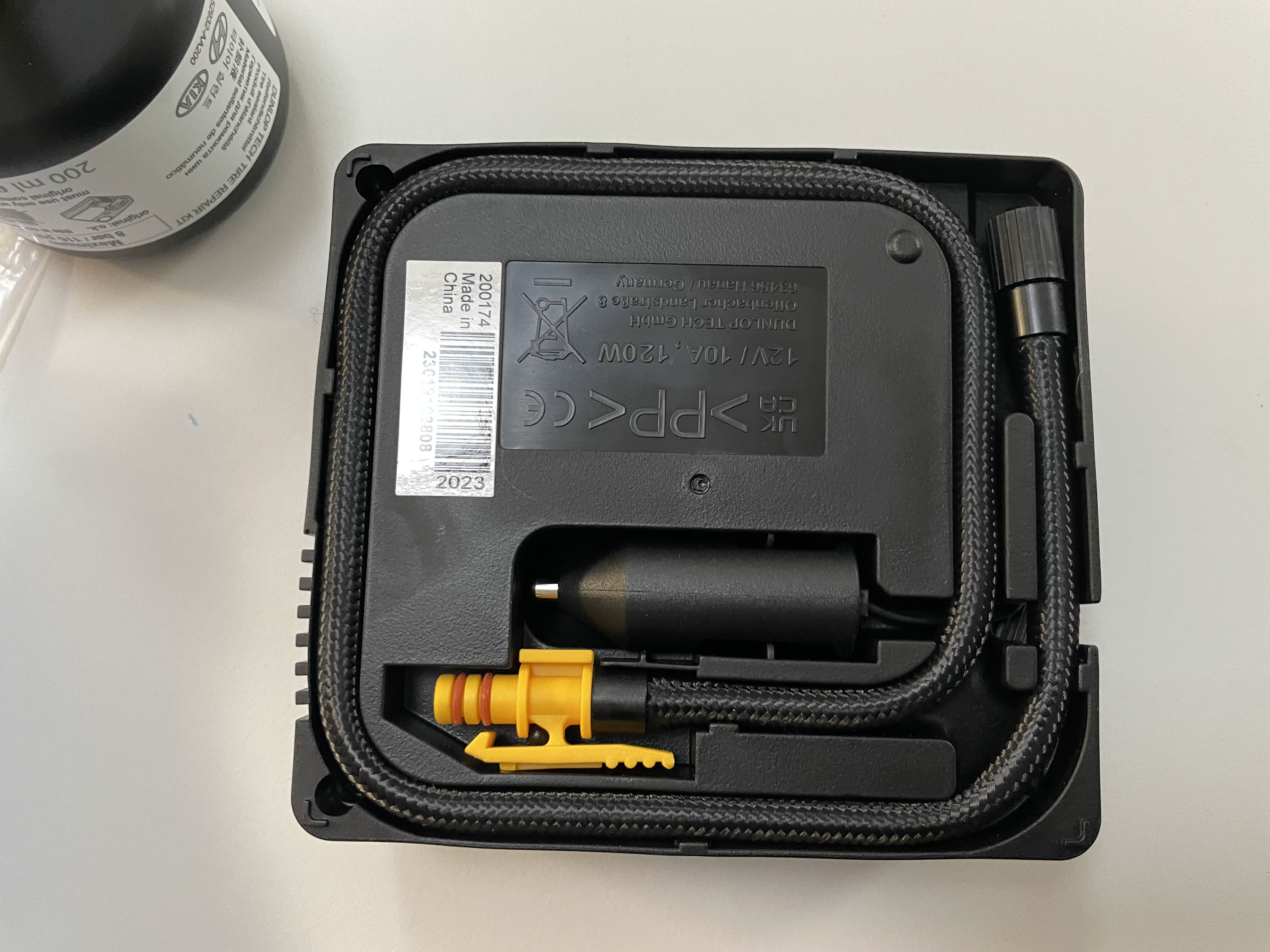 뒷 트렁크에 있는 순정 타이어 공기압 주입기를