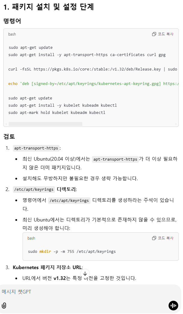 검색하여 아래와 같이 정리를 하고, 정리한 부분에 이상이 있는지를 챗GPT에 물어보면 어떤 답을 줄까?