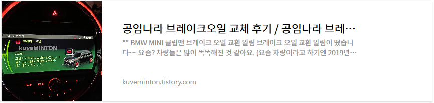| 공임나라 브레이크오일 교체 후기 / 공임나라 브레이크 오일 교환 공임 작업시간 / BMW 미니 클럽맨 브레이크 오일 교환 (1) | 2024.04.16 |