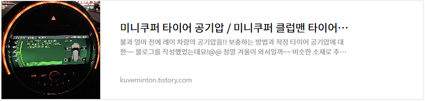 | 미니쿠퍼 타이어 공기압 / 미니쿠퍼 클럽맨 타이어 공기압 / 자동차 타이어 공기압 주입기 사용 방법 영상 첨부 (0) | 2023.11.23 |
