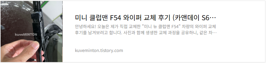 | 미니 클럽맨 F54 와이퍼 교체 후기 (카앤데이 S630) 내돈내산 후기 (0) | 2025.05.14 |