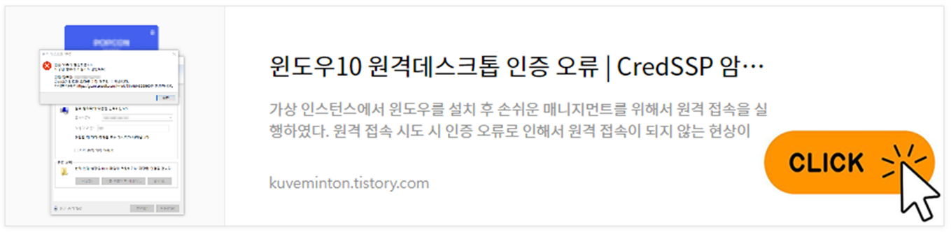 | 윈도우10 원격데스크톱 인증 오류 | CredSSP 암호화 오라클 수정 (0) | 2023.04.05 |