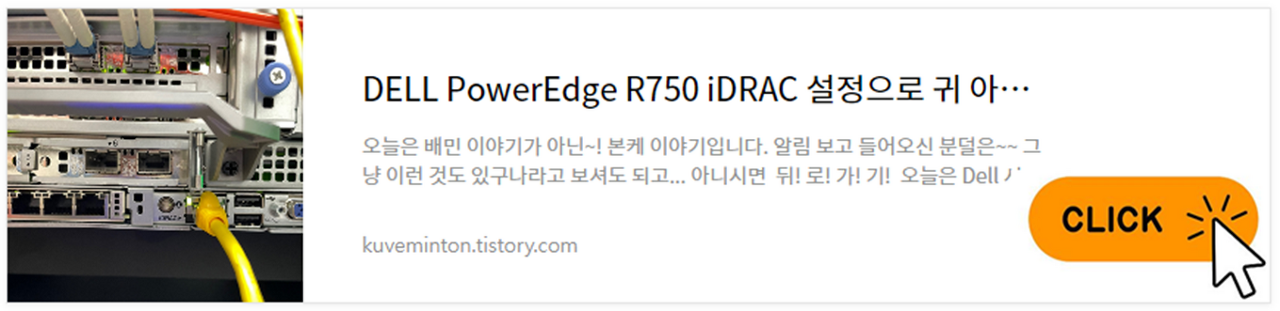 | DELL PowerEdge R750 iDRAC 설정으로 귀 아픈 랩에서 벗어나자 | 델서버 리모트 콘솔 사용 방법 (0) | 2023.05.10 |