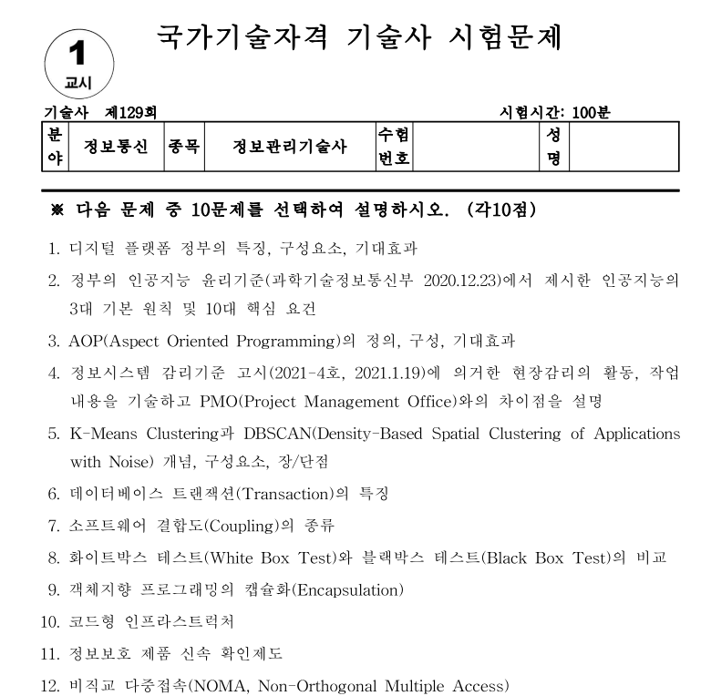 그 중에서도 정보관리기술사에 대한 내용으로 진행하겠습니다.