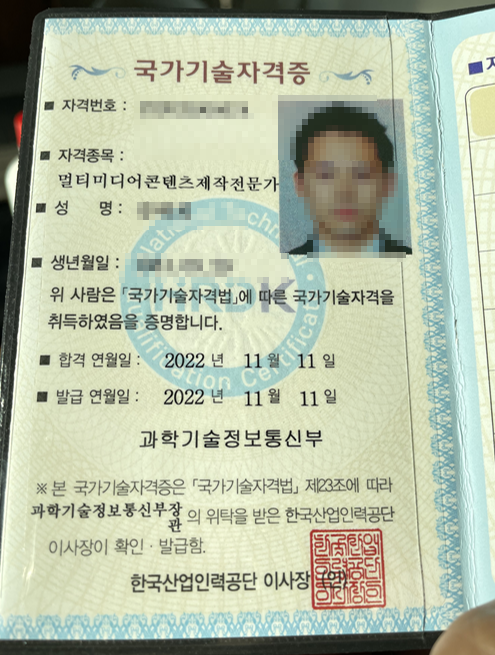 멀티미디어콘텐츠 제작 전문가 자격증