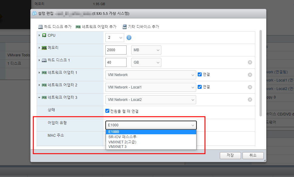 VMWARE ESXi에서 가상시스템을 생성할 때, 네트워크 어댑터 유형을 아래와 같이 선택할수 있다.